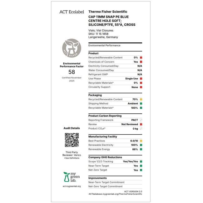 Fisherbrand™ 11mm PE Snap Ring Seal, Soft cap version, Center hole, Assembled septum