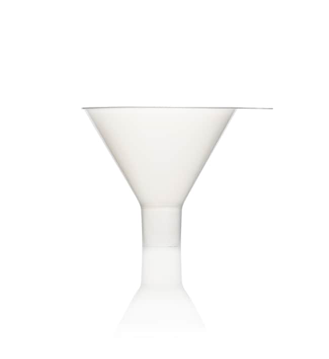 Constructed of durable, lightweight Polypropylene. Azlon™ Polypropylene Powder Funnel features a parallel stem that minimises 'bridging' of powder to improve flow. The two largest sizes have vertical-sided tops to prevent spillage.