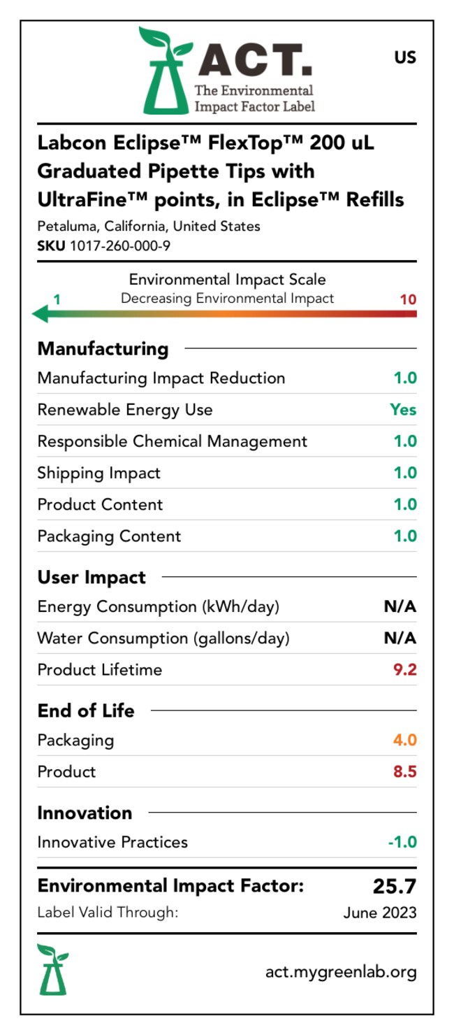 Labcon™ Eclipse™ FlexTop™ 200 μL Graduated Pipette Tips with UltraFine™ Points