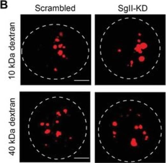 To minimize cross-reactivity, these goat anti-rabbit IgG whole antibodies have been cross-adsorbed against bovine IgG, goat IgG, mouse IgG, rat IgG, and human IgG. Cross-adsorption or pre-adsorption is a purification step to increase specificity of the antibody resulting in higher sensitivity and less background staining. The secondary antibody solution is passed through a column matrix containing immobilized serum proteins from potentially cross-reactive species. Only the nonspecific-binding secondary antibodies are captured in the column, and the highly specific secondaries flow through. The benefits of this extra step are apparent in multiplexing/multicolor-staining experiments (e.g., flow cytometry) where there is potential cross-reactivity with other primary antibodies or in tissue/cell fluorescent staining experiments where there are may be the presence of endogenous immunoglobulins. Alexa Fluor dyes are among the most trusted fluorescent dyes available today. Invitrogen™ Alexa Fluor 594 dye is a bright, red-fluorescent dye with excitation ideally suited to the 594 nm laser line. For stable signal generation in imaging and flow cytometry, Alexa Fluor 594 dye is pH-insensitive over a wide molar range. Probes with high fluorescence quantum yield and high photostability allow detection of low-abundance biological structures with great sensitivity. Alexa Fluor 594 dye molecules can be attached to proteins at high molar ratios without significant self-quenching, ena...
