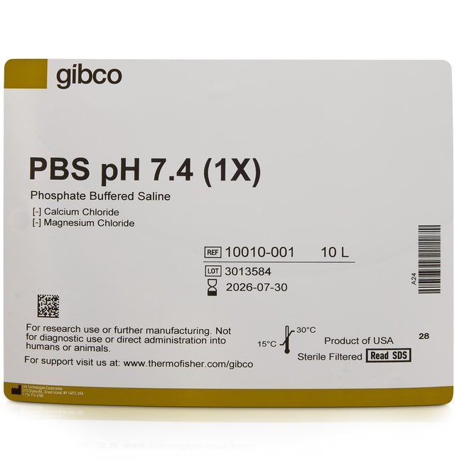Gibco PBS, pH 7.4, is a reliable and high-quality solution for various applications. Its formulation without calcium, magnesium, and phenol red makes it versatile and suitable for specific experimental needs. Choosing Gibco PBS ensures consistency, quality, and support from a trusted brand in the scientific community.